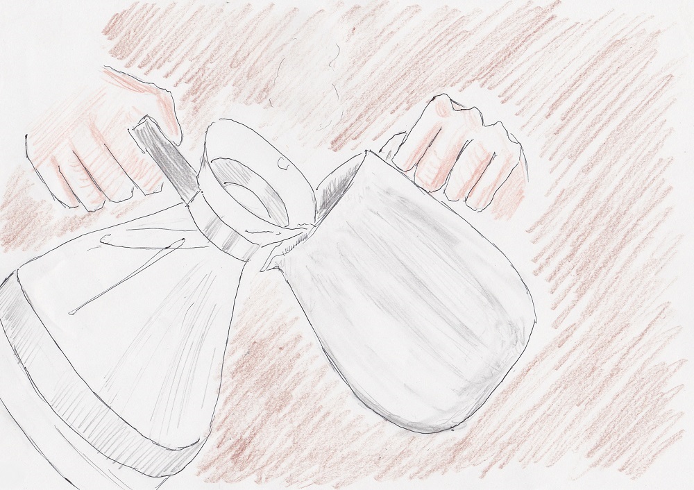 ○高いところからお湯を注ぐのは禁物高い位置からお湯を注ぐと、粉の中に穴が空いてしまい、中に空気が入ります。